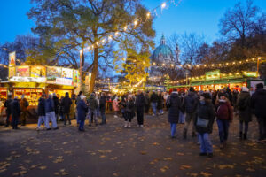 This market also offers plenty for both kids and adults. Don’t forget to check out the magnificent Christmas tree and the Tree of Hearts. There is a wide variety of food and alcohol as well as products on sale. You will also find a huge ice-skating rink for both kids and adults. There is also a cute little talking tree where you hear different birds’ sounds as you open the little door. And a Ferris wheel, carousel and children’s Christmas train.