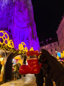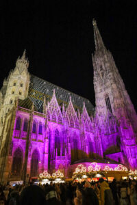 The market itself isn’t noteworthy if you personally ask me, but St. Stephen’s Cathedral, beautifully lit up at night, creates an impressive backdrop.