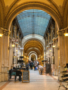 Ferstel Passage is a beautiful 19th-century arcade with restored glass ceilings and intricate architecture. During Christmas, there’s a Christmas tree and twinkling lights. There are a few restaurants and shops lined in the passage.