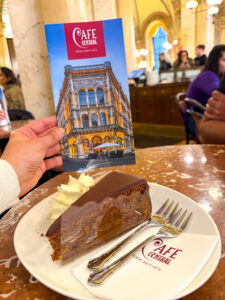 When in Vienna, you have to try Sacher Torte, a delicious flourless chocolate cake with apricot. Cafe Central, Café Sacher are the most famous cafes in Vienna for sacher torte. Cafe Landtmann, Cafe Mozart and Vollpension are other places to get a good Sacher Torte.
