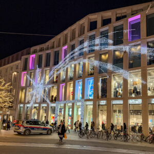 Right by the mall, Kaufhaus Tyrol, you will spot a giant illuminated shooting star stretching across the front of the mall.