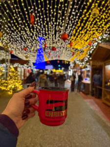 - If you order a drink in the market, you must leave a deposit for the cup, which ranges from €4 – €5. Once you have finished the drink, you can either keep the cup (as a souvenir) or return it. You don’t have to return it to the stall where you bought the drink. You can return it to any of the stalls selling drinks and get your deposit refunded. The cup designs vary between the markets, so you may want to check out the different mug designs and keep the ones you like as souvenirs and return the rest.