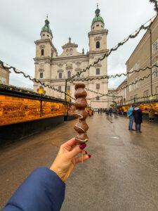 Also, you can’t leave Salzburg without trying Mozartkugel (Mozart balls), one of Salzburg’s must-try specialties. They are delicious balls of pistachio marzipan covered in dark chocolate. We picked up a few from Cafe-Konditorei Fürst located right across Residenzplatz square.