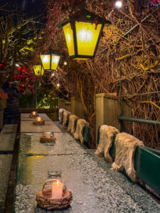 Every November, the restaurant’s courtyard is transformed into a magical Christmas Wonderland with twinkling lights, red baubles, festive atmosphere and unique charm in the heart of Salzburg’s Old Town. Tables are decked out with candles and fir branches.