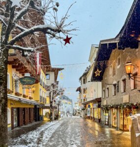 When winter arrives, Zell am See transforms into something straight out of a storybook. The snow blankets the mountains and the frozen surface of Lake Zell glitters under soft lights. And during holiday season, the town fills with warm lights, festive cheer and special winter magic. Whether you are a skier, a snow-lover or someone who wants a peaceful winter escape, Zell am See offers a little bit of everything!