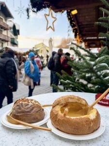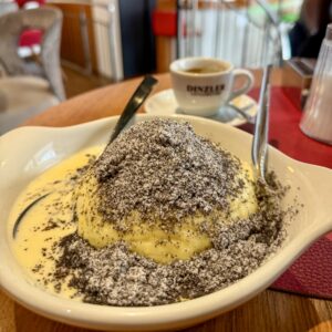 Since we had almost a washout due to the excess snow, we simply wandered around the town and its markets. During our time, we ate at Pizzeria Giuseppe and tried germknodel at Café Seegasse. Highly recommend both.