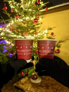 The other market is in Elisabeth Park, right on the shores of Lake Zell, where illuminated star decorations float above the water. In addition to the stalls offering food, crafts and mulled wine, you can see locals and visitors enjoying and warming themselves by bonfires. The whole set up is just gorgeous!