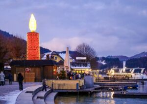 This village is famous for its Christmas candles. An 11 meters high candle glows on the lake shore and as you are walking around you will notice that this town is lit by more than 50 candles and thousands of lights during the Advent season!